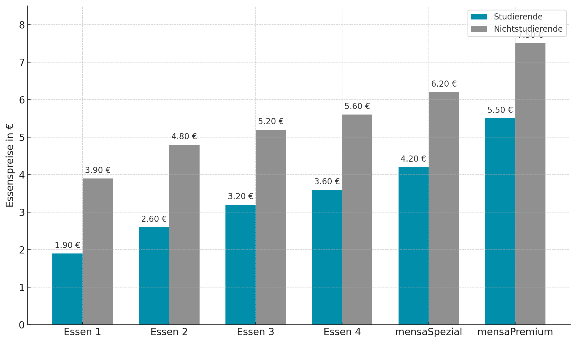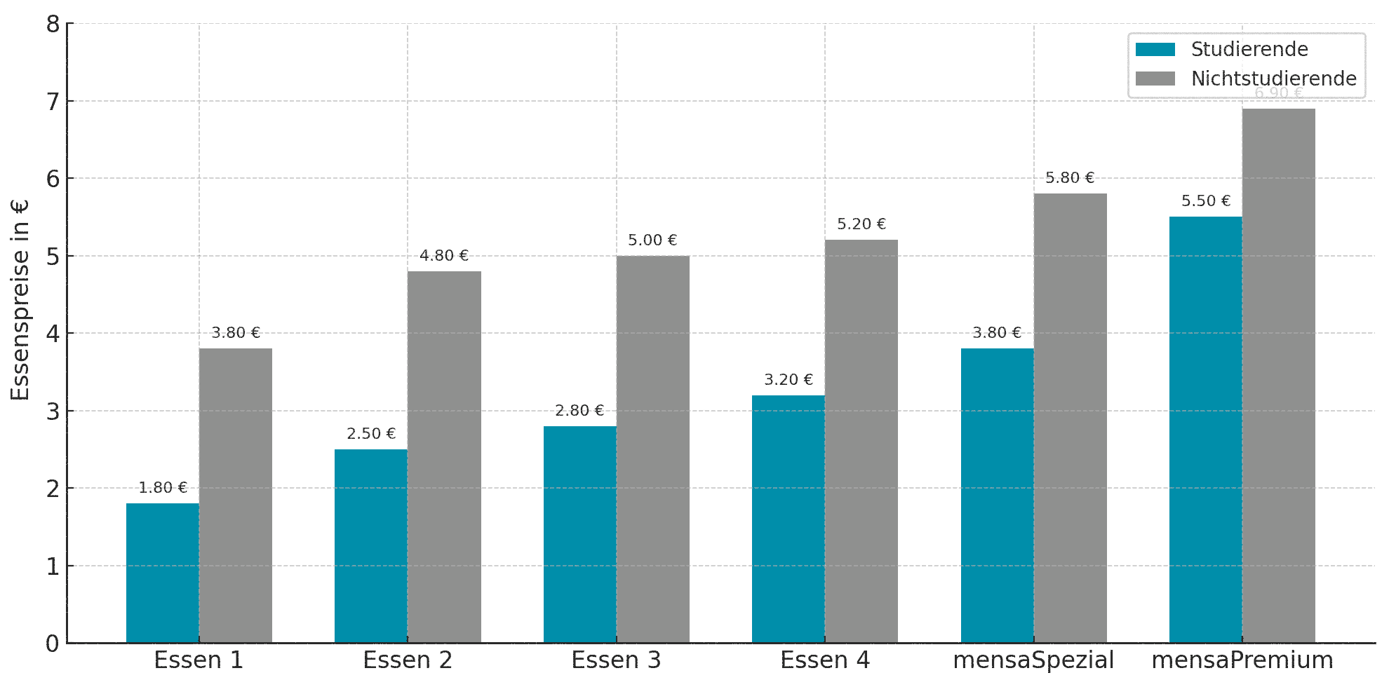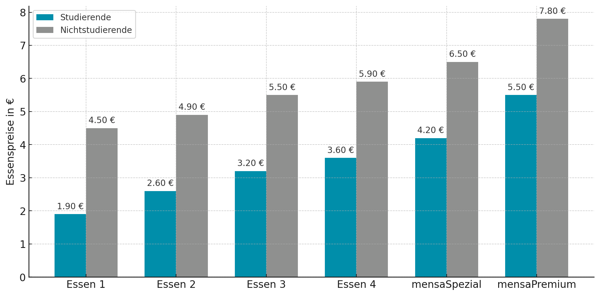 Entwicklung der Essenspreise Studierende/Nichtstudierende